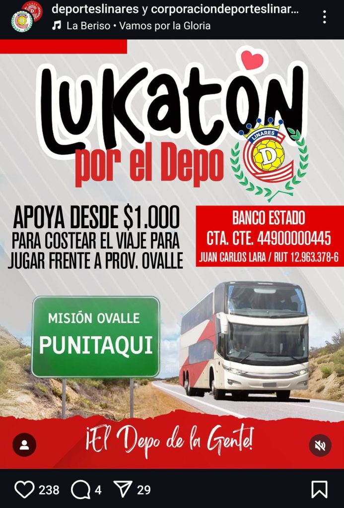 Este año no es diferente la situación y en Deportes Linares el panorama es crítico. La crisis económica pegó tan fuerte en el «Depo», que el club está llamando a hacer una «Lukaton» para poder costear el viaje hasta Ovalle, donde deberá medirse ante el cuadro local la próxima fecha del campeonato de segunda división.