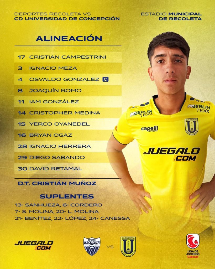 Listas las Formaciones de Deportes Recoleta y la Universidad de Concepción por una nueva jornada de la liga de ascenso